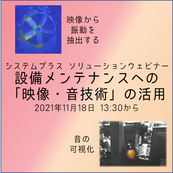音響カメラだけでなく、映像から振動を測定する技術についてもご紹介いたしますので、よろしければ参加登録をお願いします。