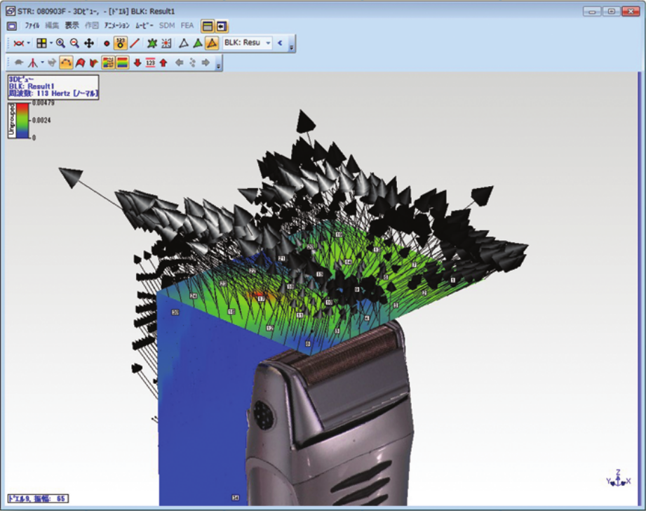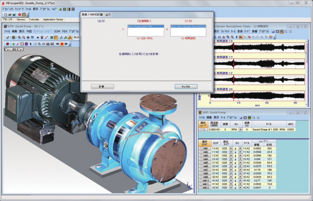 測定データに対してFFT,逆FFT,微分/積分, フィルタリング、算術演算などの波形処理をする機能です。ODS FRF(実稼動の位相付振幅)計算および複数回に分けて測定したODS FRFの振幅調整機能も含まれています。また、これらの後処理を行ったデータで、測定対象モデルの挙動をアニメーション表示することもできます。 更に、MIMOモデリング・シミュレーション、音響解析機能も含まれます。