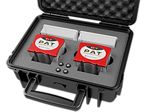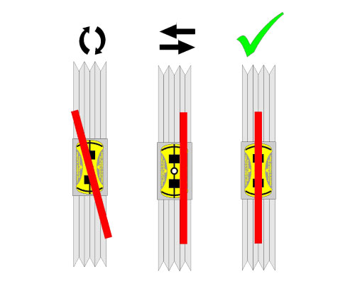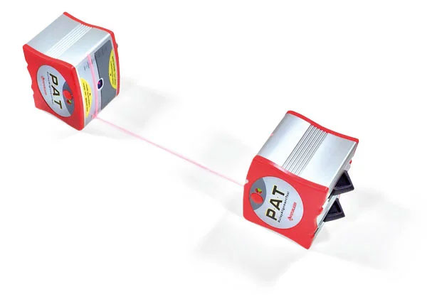 PAT には 2 ラインのレーザー送信機が付属しており、それぞれの送信機にはプーリーの溝にフィットする 2 つのバネ式ガイドが装備されています。統合されたターゲットを備えた 2 つのレーザー送信機を使用すると、どのような種類の位置合わせが必要かを非常に簡単に見つけることができます。平行オフセット、角度誤差、ねじれはオペレーターに即座に表示されます。オペレーターは数分以内に、機械の調整が必要かどうかを判断できます。